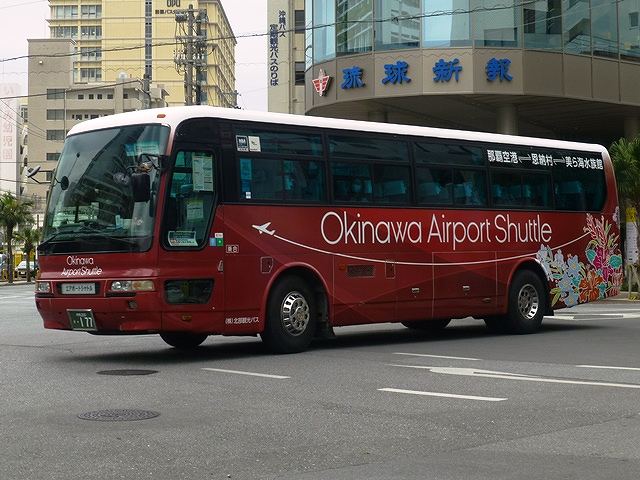 那覇空港と運天港を結ぶ「やんばる急行バス」。2013年に今帰仁村の沖縄中央観光が路線バスに新規参入し、運行開始当初は言い方が悪いですがいかにも「中古バス」というような雑多な経年車ばかりでした。現在も移籍車が中心となっていますが、現行ボディの車両へ代替が進んでいます。ただ、相変わらず元の事業者の塗装デザインを綺麗に塗り消しただけのような車両も少なくなく、画像の東武バスから移籍したいすゞRUもそんな1台。扉付近のJピラーは一部を剥がしたようで跡が残っています。