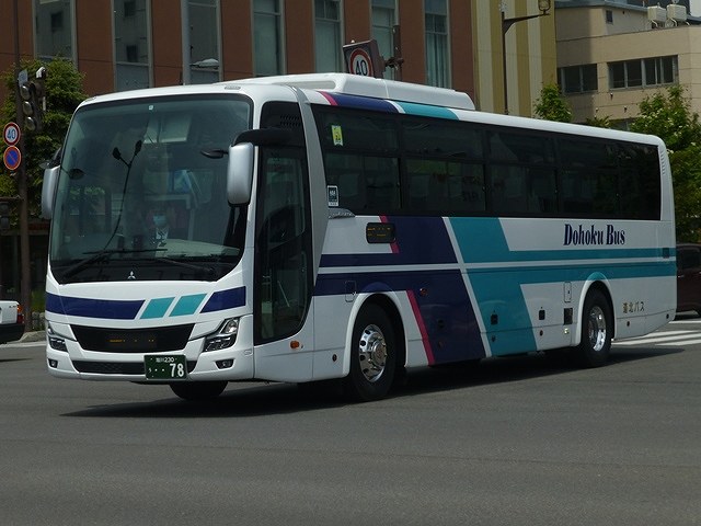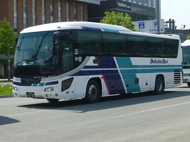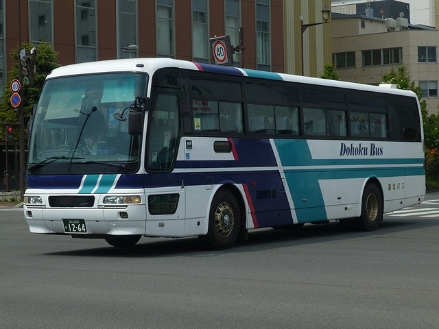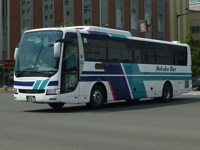 同じく西武バスから移籍したいすゞガーラハイデッカーですが、こちらは後部トイレ付の4列シート仕様車。道北バスに早い段階で移籍したジェイバス製RUは、フロントガラス下に「DohokuBus」ロゴを貼っています。下辺の曲がり具合に合わせた配置のため、特に「Bus」の部分が独特な感じになっています。