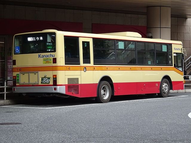 今でこそノンステップバスの大量導入が続いている神奈川中央交通ですが、交通バリアフリー法施行までツーステップ車を数多く導入していました。前扉の「第1ステップをドア開放と同時に下げて段差を縮める「新ステップバス」 」をいちはやく採用したことで、本格的な低床化が遅れたともいえます。交通バリアフリー法施行後はワンステップ車・ノンステップ車を並行導入しますが、2000年代は補助金があればノンステップ車、無ければワンステップ車を導入するという感じでした。2000年代の神奈川中央交通は銀サッシのニューエアロスターばかりという感じでしたが、近年のノンステップ車大量導入によりワンステップ車の割合が下がりつつあります。画像は古参格となったPJ規制車の三菱ふそうMPワンステップ車です。