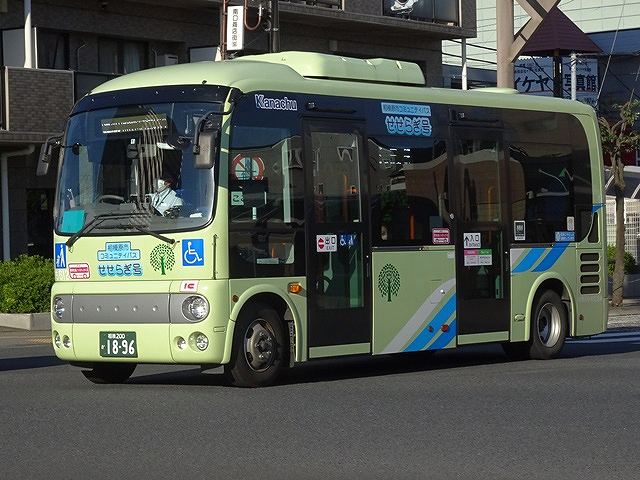 コミュニティバスの専用車となっている車両も多く、画像の車両は相模原市コミュニティバス「せせらぎ号」専用車となっています。