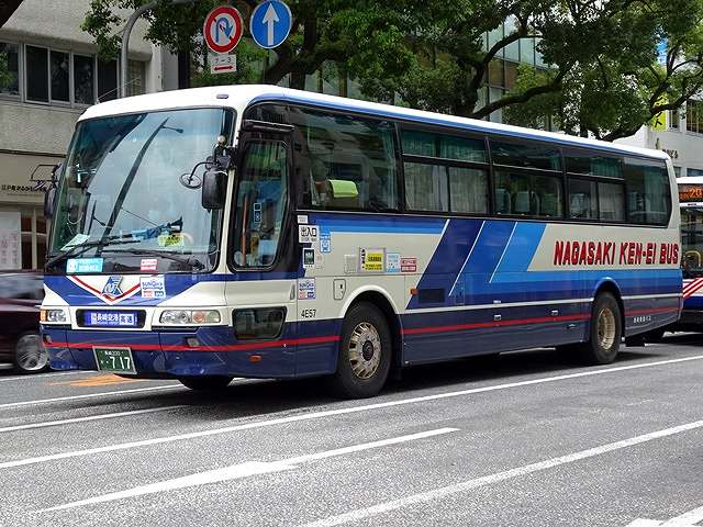 長崎県交通局は貸切車や高速車にも移籍車を導入しており、画像の三菱ふそうエアロバスは京浜急行バスからの移籍車です。折戸仕様でトイレ無しの元リムジンバス車両は長崎県交通局の県内路線にぴったりといえそうです。