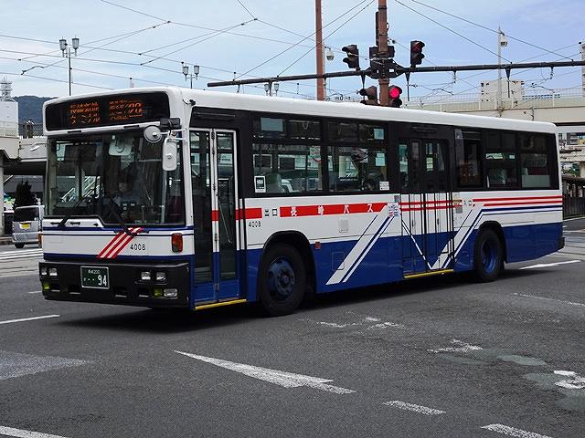 三菱ふそう車も純正ボディと西工ボディを並行して導入しています。日野車が標準尺車と長尺車を導入しているのに対し、三菱ふそう車は標準尺車と短尺車を導入しています。00年に導入した短尺の西工ボディ車。ちなみに西工ボディで上部開閉側面窓の車両はツーステップ車もブロンズサッシを採用しています。