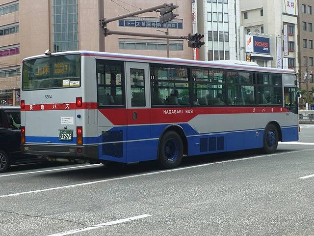 長崎自動車では一般乗合・高速・貸切をあわせても少数派の三菱ふそう車。一般乗合車では94年以来の導入となった99年車。純正ボディのM尺ツーステップ車。ツーステップ車もブロンズサッシを採用しています。