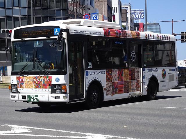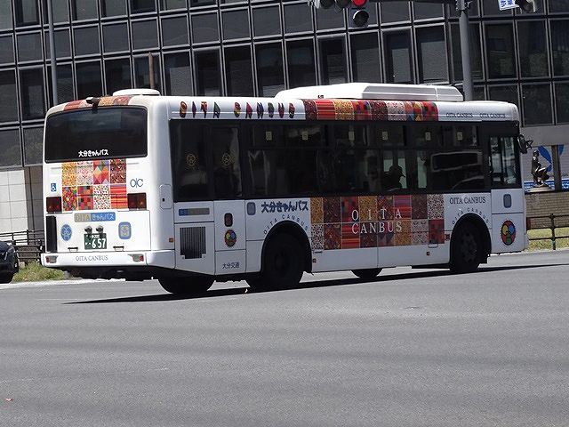 「大分きゃんバス」は大分駅高速バス乗り場でもある要町を起点に大分駅の南北にある大分市立美術館と大分県立美術館を中心市街地経由で循環する大分市主導のコミュニティバスです。大分バスと大分交通が運行を担当しています。専用車両の内外装のデザインを水戸岡鋭治氏が手がけており、ロゴやアイコンを多用した外装、シートモケットやカーテンなどトータルコーディネートした内装が特長となっています。