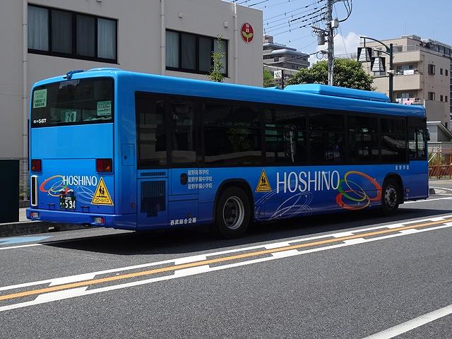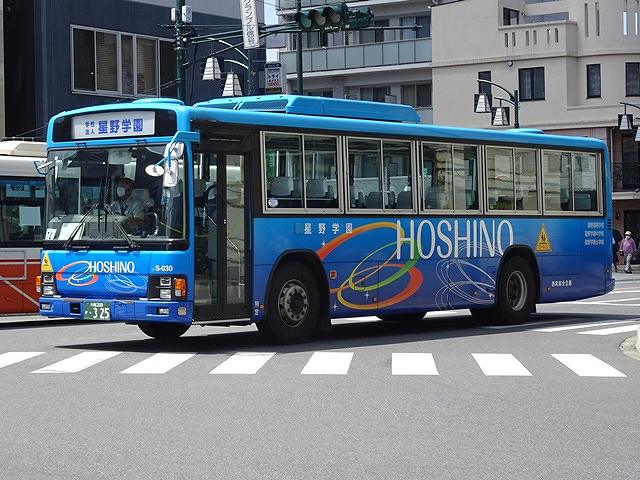 ここでは本川越駅前で記録した「星野学園」向け専用車の画像を並べていきます。古参格となるPJ規制車のいすゞLVトップドア車。塗装は西武バスの「笹バスカラー」色をアレンジしたようなデザインで登場しましたが、学校オリジナルのデザイン制定により一部をラッピング対応しています。