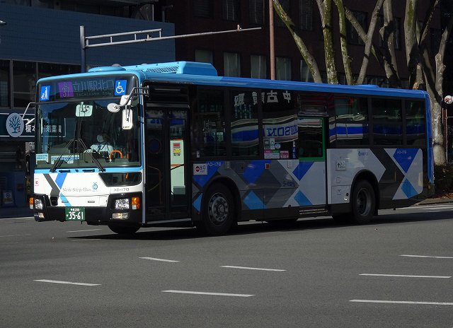 まずは在籍車両では最も多いいすゞ車から、22年導入のLV。現行塗装の「S-tory」デザインは2020年から採用しています。