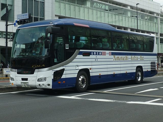 山梨交通は中央高速バスの共同運行事業者として、バスタ新宿と甲府を結ぶ中央道新宿線をはじめ多くの路線を担当しています。高速車の「自社発注車はいすゞガーラに統一 」しており、塗装デザインは「国際興業グループの貸切カラーを採用 」しています。
