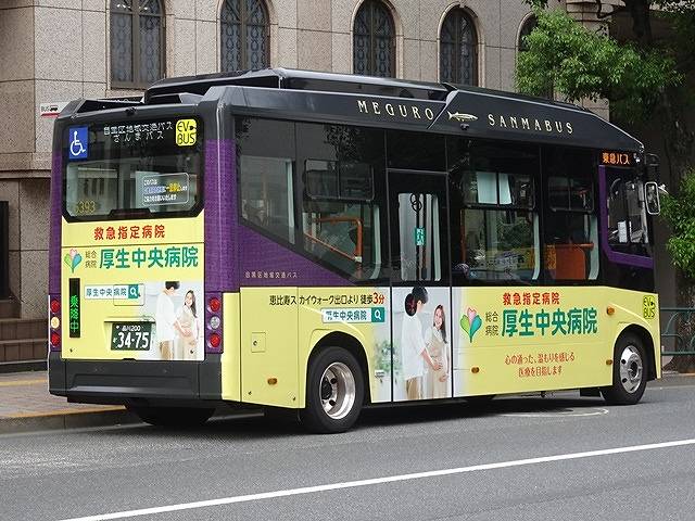 ここでは手持ちの東急バス画像を何枚か並べていきます。まずはUD製エンジンを搭載したPKG規制車の三菱ふそうMPノンステップ車。目黒営業所と弦巻営業所の車両はバイオ燃料を使用しているので、前面と側面にステッカーを貼りPRしています。