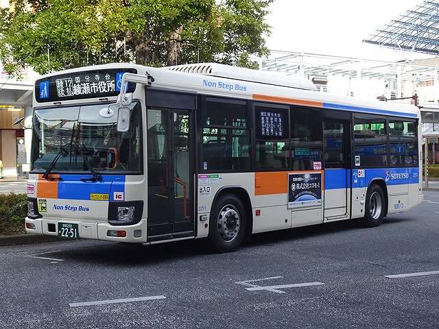 画像は22年に導入したいすゞLVで、右側燃料タンク車です。相鉄バスは現行ジェイ・バス製ボディノンステップ車の燃料タンクを導入年により、左だったり右だったり。営業所の給油施設が片方に集中しないよう考慮しているようです。