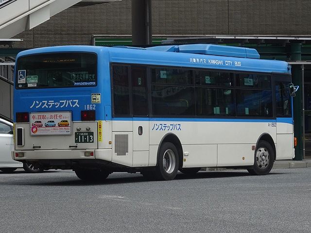 続いて、局番のメーカーを表す数字「1」のいすゞ車から、川崎市交通局最古参格となる2008年に導入したPKG規制車のLVノンステップ車。