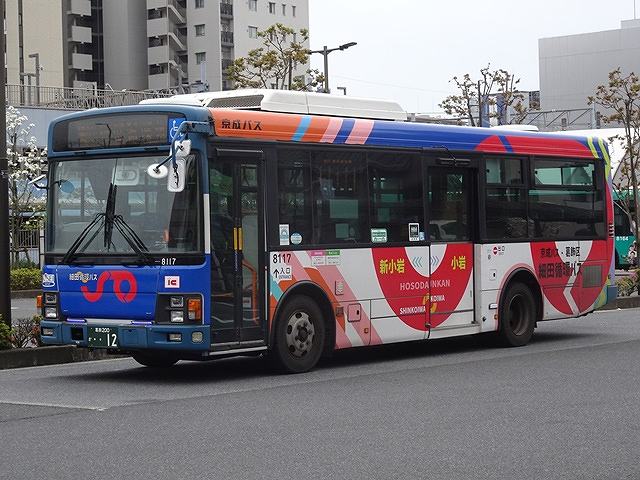 新小岩駅東北広場からは「細田循環バス」も発着しています。「細田循環バス」は葛飾区内の利便性向上を目的に運行を開始し、京成バスと京成バス東京が共同運行しています。中型車で運行しており、画像のいすゞLRは「細田循環バス」オリジナルデザインラッピングを施した専用車となっています。
