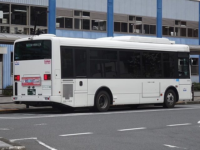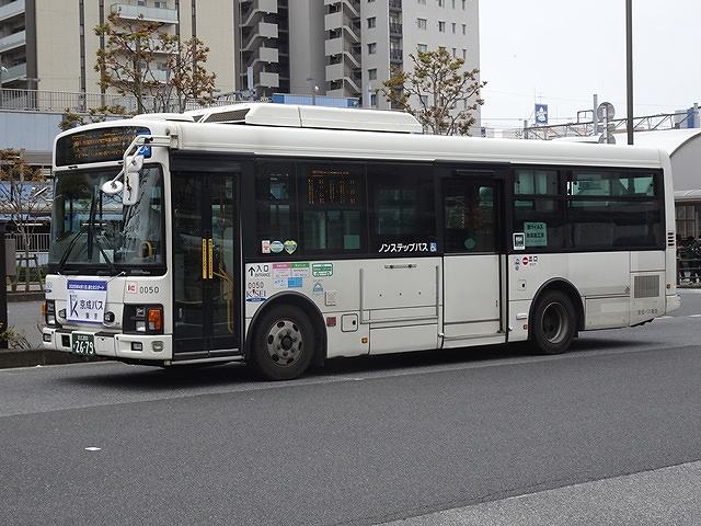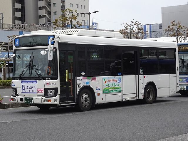 13年導入のいすゞLRノンステップ車。真っ白なボディなだけに旧京成タウンバスのロゴを隠した跡が目立ちます。
