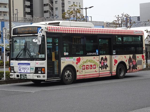 まずはいすゞLRノンステップ車で、葛飾区内にあるサッカー漫画「キャプテン翼」登場キャラクターの像をPRしたラッピング車となっています。前回の京成バス編でも葛飾区が関与しているラッピングバスの画像を並べていることから、葛飾区は様々なラッピングバスを走らせているようです。