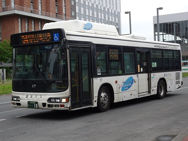 道北バスの在籍車両は一般乗合車だけでなく、都市間車や貸切車も移籍車中心となっているため、自社発注車は限られた存在です。せっかく新車を買うなら最先端の車を導入しようということか、日野のハイブリッド車「ブルーリボンシティハイブリッド」を2006年から10年まで継続して導入しました。※2006年に導入した車両はメーカーサンプル(カタログ)車といわれているので、厳密には自社発注の新車と言いにくいですが。