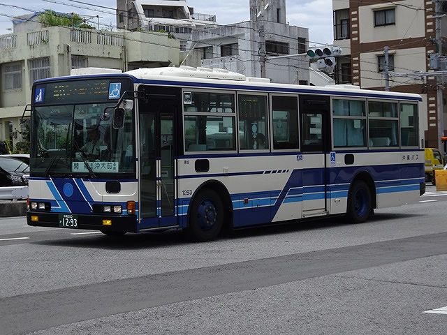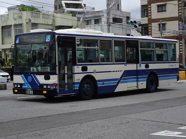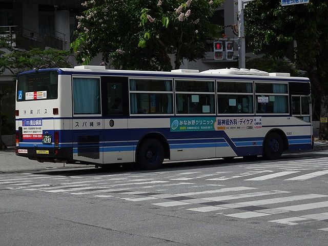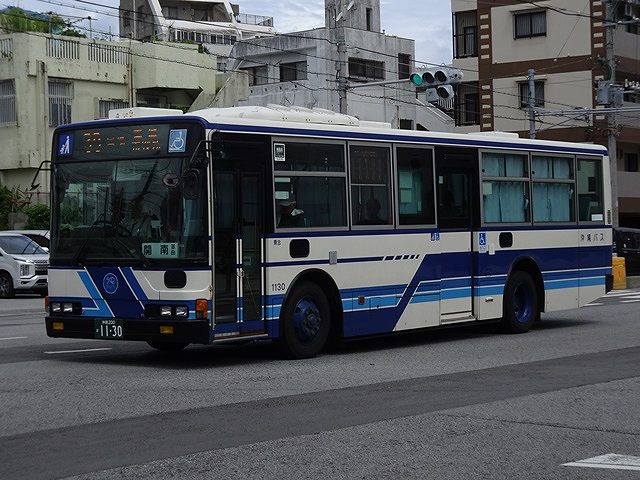コンスタントな新車導入と減便により、昼間の那覇市内を発着する路線は見たところ自社発注の低床車による運用が中心。神奈川中央交通からのMPワンステップ移籍車は比較的運行本数の多い糸満や南城市方面の路線に1~2台が運用に入っているという感じでした。