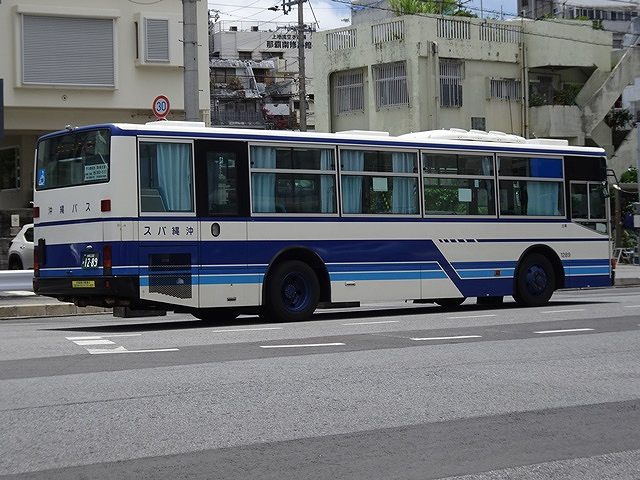 まずは、今回沖縄バスのハイデッカーで唯一記録出来た、いわゆるニューエアロバスボディのMS86短尺車。大型ハイデッカーの市販モデルは12mサイズだけとなった現在ですが、KL規制車あたりまで各メーカー短尺車や背の低いスタンダードデッカーもラインナップしていました。