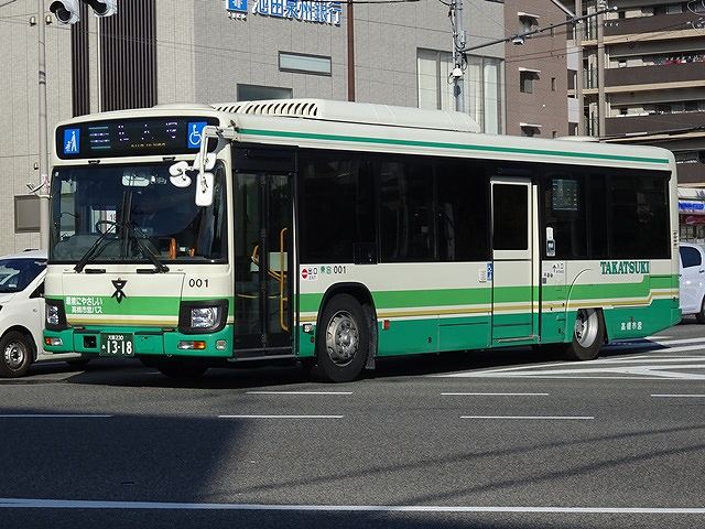 大阪230あ1318.バス番号001.QDG-LV290N1(17年車)。2025年11月記録。