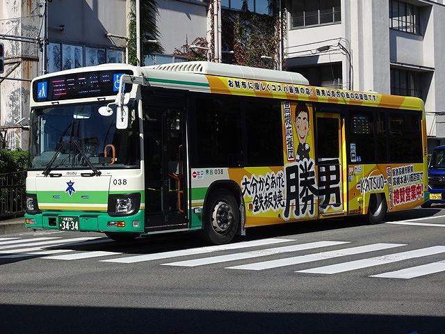 大阪230あ3434.バス番号038.2RG-LV290N4(24年車)。2025年10月記録。