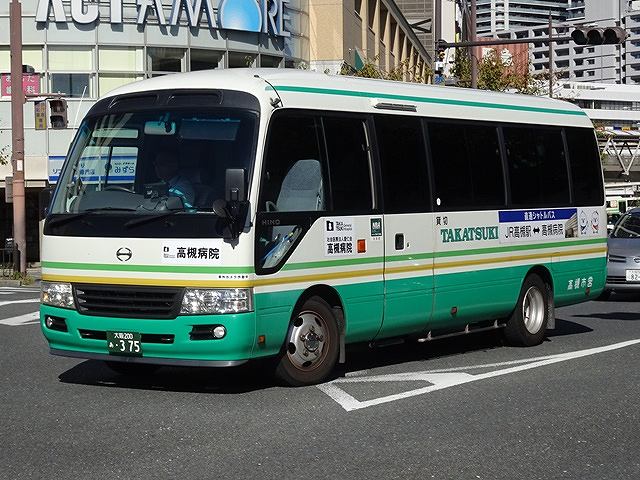 路線タイプの大型車と小型車、ワゴンタイプで契約輸送を中心に営業 」しています。画像の車両は2008年に導入したマイクロバス、日野リエッセⅡのAT車です。現在は高槻病院へのシャトルバスの運用をメインにしているようです。