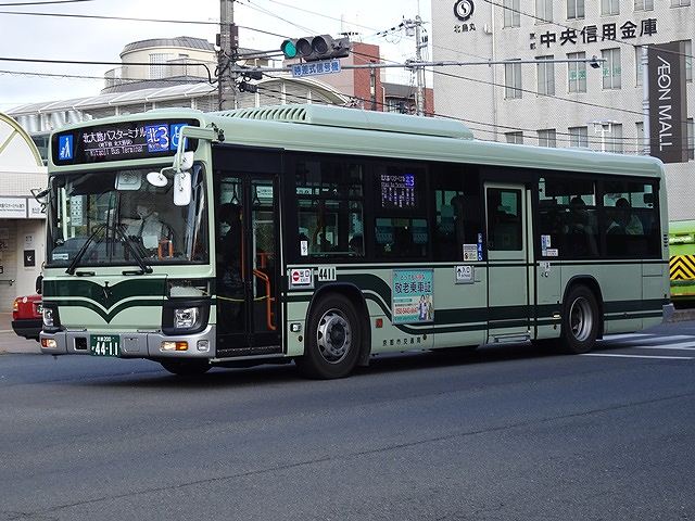ノンステップバスとともに、ワンステップバスも継続的に採用 」していました。現在残る西工ボディを架装したワンステップ車は2008年に導入したいすゞLVのAT車のみとなりました。全車烏丸営業所配置なので、地下鉄北大路駅周辺にいれば間違いなく見ることが出来ます。