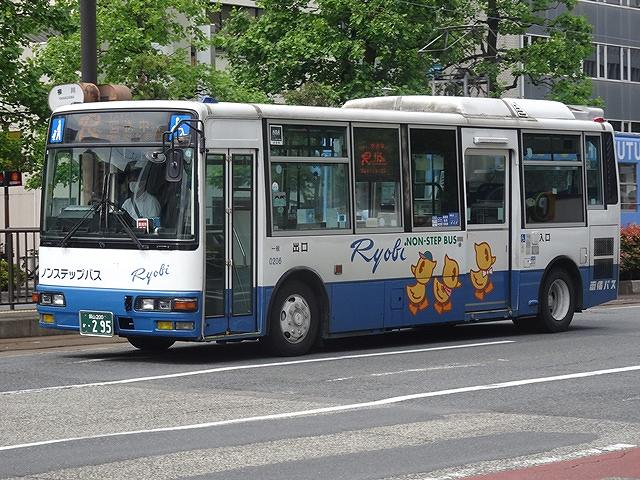 需要の比較的少ない路線 」向けに少数在籍しています。画像は古参格となる2002年導入車で、まだ改造型式扱いだったMJノンステップ車。このあたりまでのノンステップ車は両備グループの岡山電気軌道と同じヒヨコのステッカーを貼っていました。