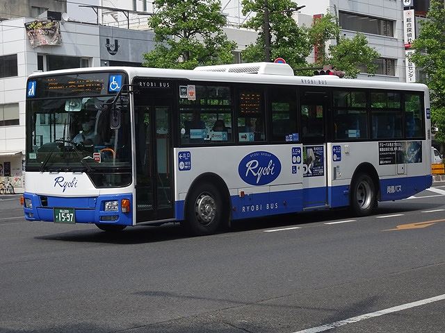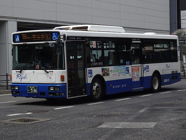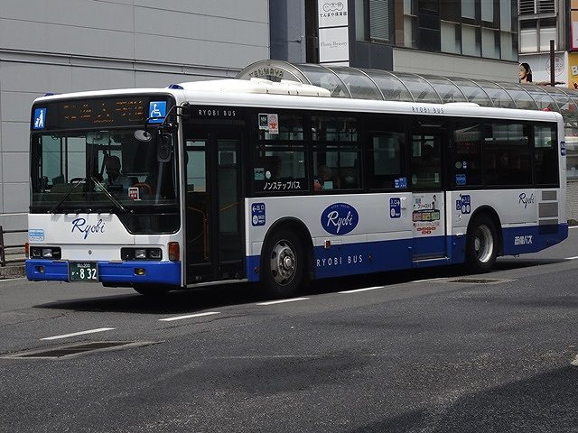 在籍車では古参格となるKL規制車の短尺ワンステップ車。クーラーは三菱重工製を搭載しています。一般路線車の塗装は白地に下部青色というデザインを採用しています。