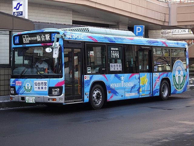 仙台市は全面ラッピングバスの運行も可能なので、スポンサーのカラーを打ち出したカラフルな車両が走っています。