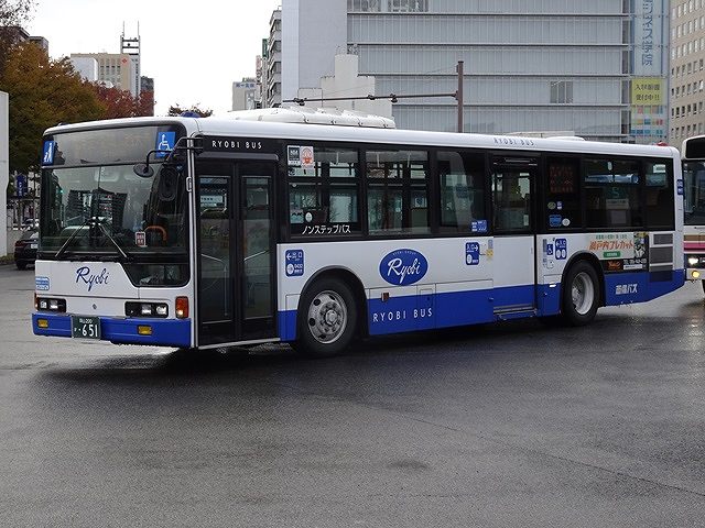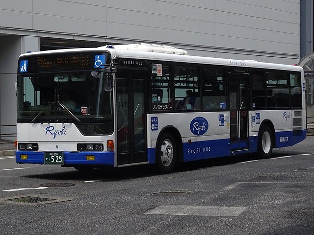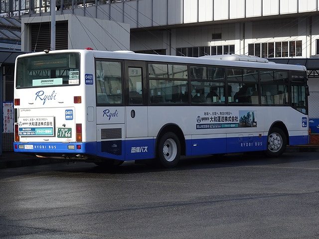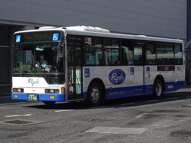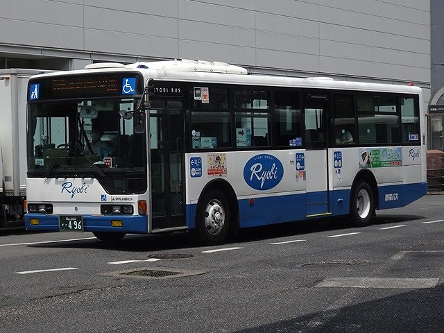 こちらは郊外路線むけに導入したMP短尺ワンステップ車。正面の「Ryobi」ロゴは「i」を★にした現行デザインのものに変わっています。